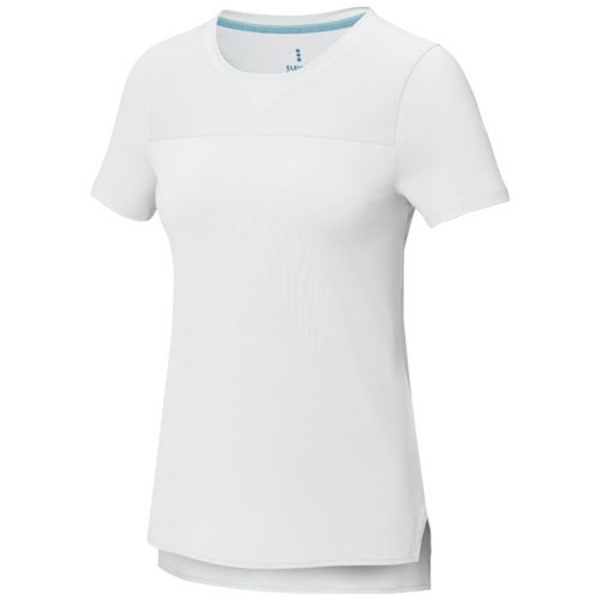 Udržitelné propagační oděvy. Kulatý výstřih s detailem ve tvaru V. Límec ve shodné tkanině. Boční rozparky. Prodloužený zadní díl. Dvoubarevná značková páska od ramene k rameni. Potisk štítku technologií heat transfer pro větší pohodlí.