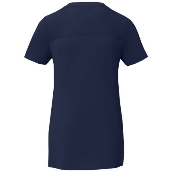 Udržitelné propagační oděvy. Kulatý výstřih s detailem ve tvaru V. Límec ve shodné tkanině. Boční rozparky. Prodloužený zadní díl. Dvoubarevná značková páska od ramene k rameni. Potisk štítku technologií heat transfer pro větší pohodlí.