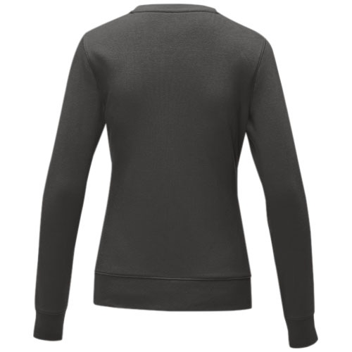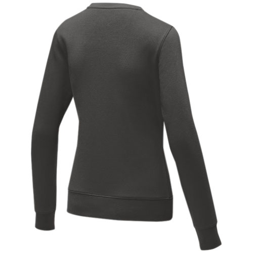 Dámsky sveter s okrúhlym výstrihom, klasický dizajn okrúhleho výstrihu je zvýraznený plochými pletenými rebrovanými detailmi na golieri, manžetách a spodnom leme. Možnosti vnútorného brandingu.