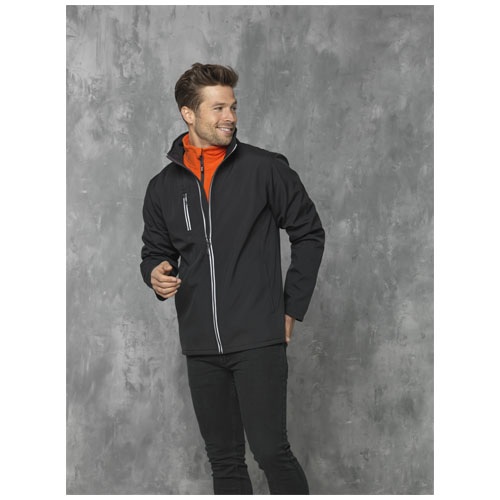 Pánska softshellová bunda z mechanicky strečového tkaného polyesteru s gramážou 250 g/m2 a má mikrofleecovú podšívku. Má odkrytý plastový zips Vislon v strede prednej časti, ako aj na náprsnom vrecku.