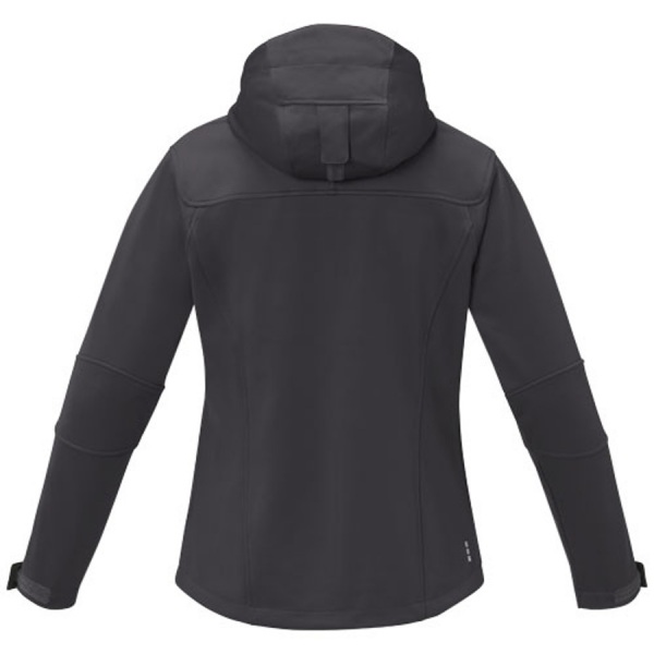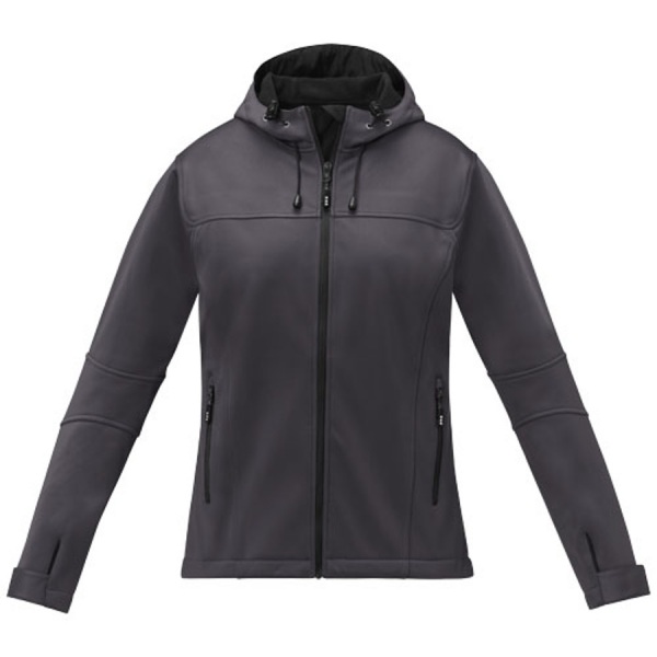 Dámska softshellová bunda s trojvrstvovou lepenou konštrukciou. Vodeodolnosť 3000 mm, priedušnosť 3000 g/m2 - ochrana pred ľahkým dažďom. Znížený zadný lem, elastická šnúrka s nastaviteľným zámkom umožňuje prispôsobenie strihu pre väčšie pohodlie.