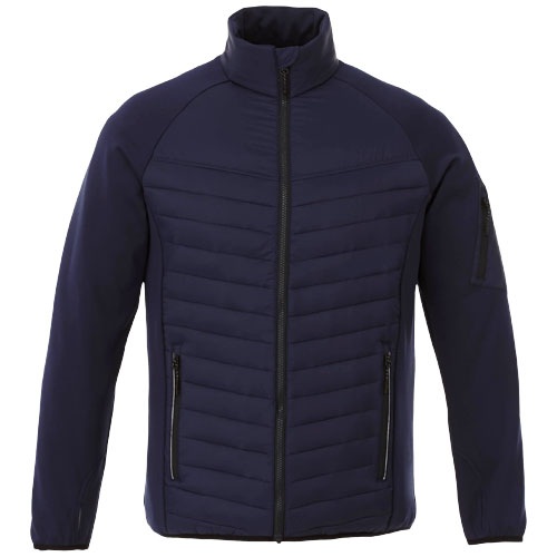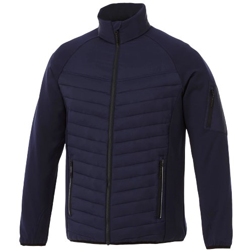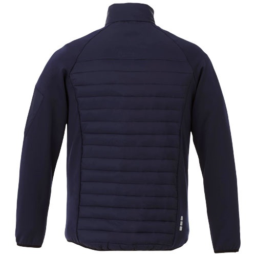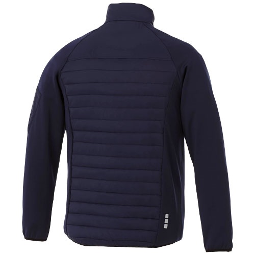 Pánska hybridná izolovaná bunda. Vnútorná chlopňa zaisťuje, že cez bundu neprenikne vietor, a znížený zadný lem dodáva extra krytie pre väčšie teplo. Elastické lemovanie v kontrastnej farbe vodeodolnú úpravu. Izolácia z umelého páperia.