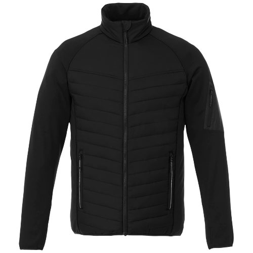 Pánska hybridná izolovaná bunda. Vnútorná chlopňa zaisťuje, že cez bundu neprenikne vietor, a znížený zadný lem dodáva extra krytie pre väčšie teplo. Elastické lemovanie v kontrastnej farbe vodeodolnú úpravu. Izolácia z umelého páperia.