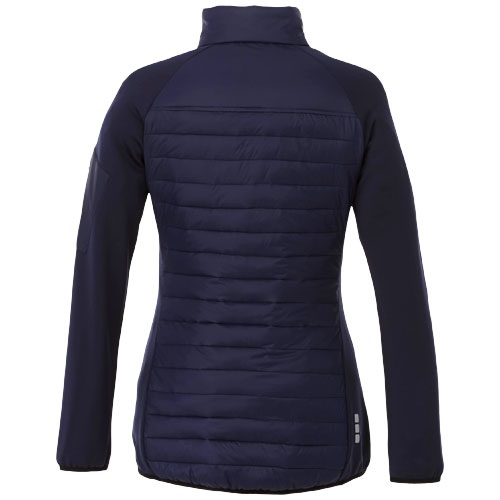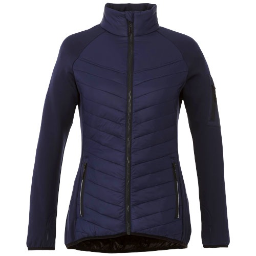 Dámska hybridná izolovaná bunda. Vnútorná chlopňa zaisťuje, že cez bundu neprenikne vietor, a znížený zadný lem dodáva extra krytie pre väčšie teplo. Elastické lemovanie v kontrastnej farbe vodeodolnú úpravu. Izolácia z umelého páperia.