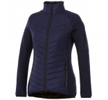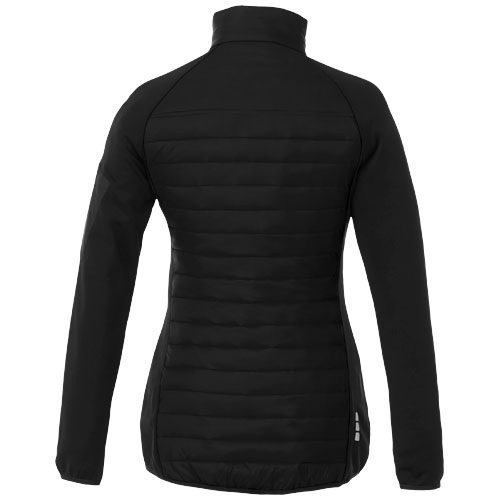 Dámska hybridná izolovaná bunda. Vnútorná chlopňa zaisťuje, že cez bundu neprenikne vietor, a znížený zadný lem dodáva extra krytie pre väčšie teplo. Elastické lemovanie v kontrastnej farbe vodeodolnú úpravu. Izolácia z umelého páperia.