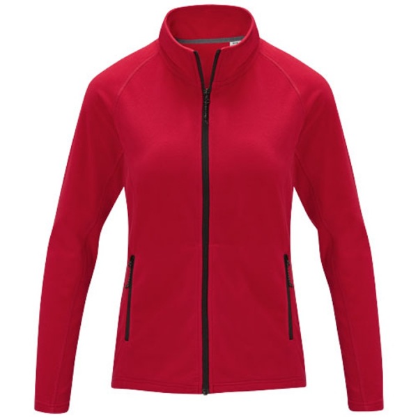 Dámska flísová bunda Zelus má možnosť vlastného označenia na vnútornej strane. Odtrhávací hlavný štítok s výstrihom zaisťuje pohodlie bez visačky, zatiaľ čo kontrastný obrátený zips dodáva moderný nádych. Predné vrecká na zips. Dámsky priliehavý strih.