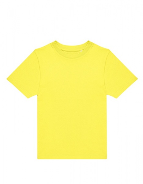 100 % predzrážaná, prstencovo pradená bavlna | Jednoduchý džersej | Strih bez bočných švov (veľkosť 1/2 s bočnými švami) | Úzky rebrovaný golier | Výstužná páska za krkom vzadu | Bez štítku