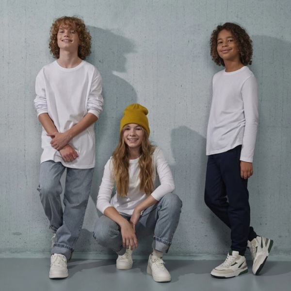 100% predzrážaná, kruhovo dopriadaná bavlna | Jednoduchý džersej | Bez postranných švov | Úzky rebrovaný golier | Spevňovacia páska za krkom vzadu | Bez štítku