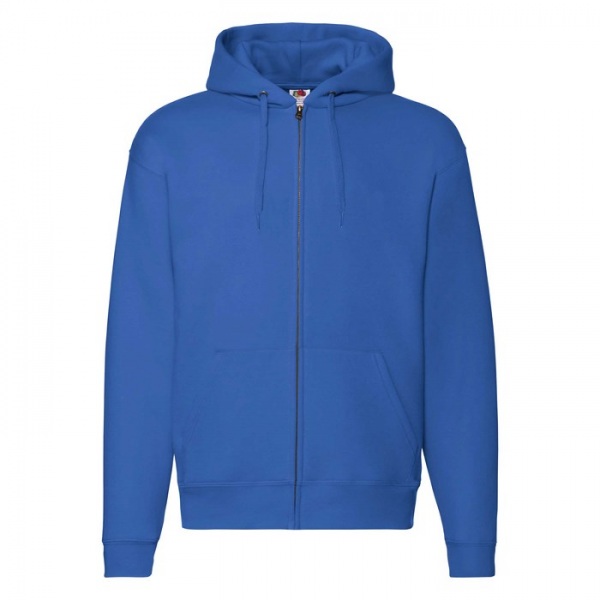 Krytý kovový zips pre lepšie možnosti potlače | Dvojitá kapucňa s plochou sťahovacou šnúrkou v rovnakej farbe | Spevňovacie páska za krkom z jednoduchého džerseja | Dve prispôsobené predné vrecká | Dvojité prešitie po celej ploche | Pas a manžeta rukáve z