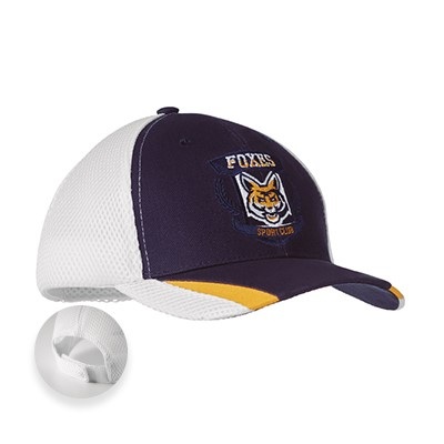 6 panel medium profile trucker hat. Brushed heavy cotton front with sport mesh back. Pre-curved multi-colour visor, polyester sweatband and hook and loop closure.