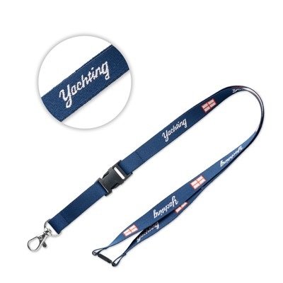 MOQ 100 pcs. 1 colour woven logo on 1 side included (negative motive on the back). With detachable buckle, safety breakaway and metal hook. Size 40x2cm + 6x2cm. Add the optional antibacterial treatment (ISO 20743) to the polyester ribbon.