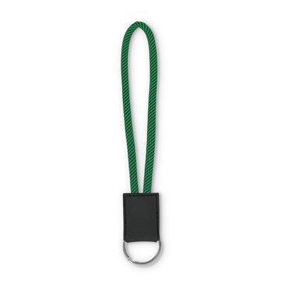 MOQ 100 pcs. 1 colour embossed logo included. Round 2-tone polyester, with keyring and PVC badge. Size 15cmx2 / 0,5cm (dia).
