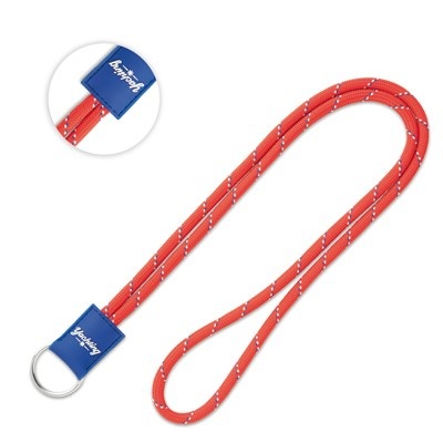 MOQ 100 pcs. 1 colour embossed logo included. Round 3-tone polyester, with keyring and PVC badge (own PMS). Size 45cmx2 / 0,5cm (dia).