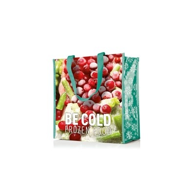 MOQ 1.000 pcs. Cooler bag with long handles (length: 60cm, width: 2,5cm). Dimensions bag: 42x36x20cm.