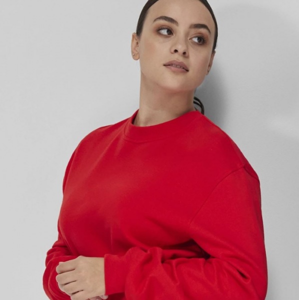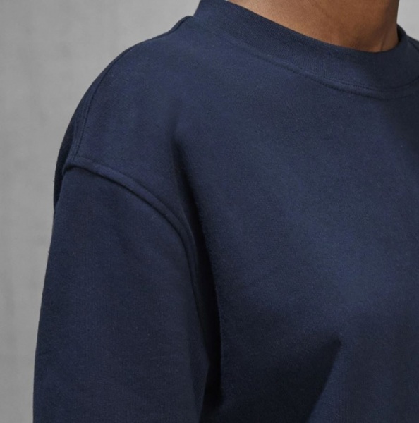 50% predzrážaná kruhovo dopriadaná bavlna / 50% recyklovaný polyester | Česaný flís vo vnútri | S bočnými švami | Klasický voľný strih | Vsadené rukávy s mierne spadnutými ramenami | Klasické manžety a spodný lem s rebrovaním 1x1 s elastanom | Bez štítku