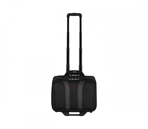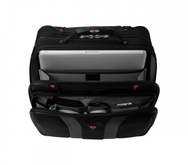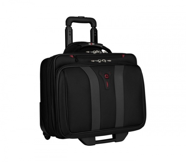 Business taška na notebook na kolieskach s moderným dizajnom. Polstrovaný priestor pre väčšinu notebookov do veľkosti 17". Priestranná rýchlo prístupná priehradka je ideálna pre dlhšie služobné cesty. Obchodný organizátor udržuje perá, telefón