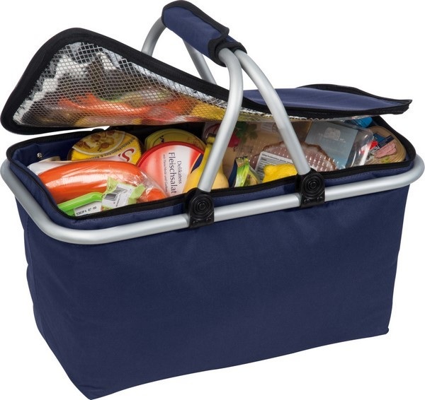 Nákupný košík s hliníkovým rámom. Košík má vnútornú izoláciu, ktorá slúži na chladenie.