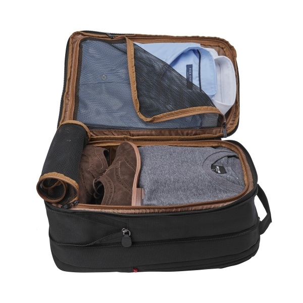 Batoh s polstrovanou priehradkou na 16" notebook a 12" tablet. Obsahuje sieťovaný záves, organizér na základné veci, dve predné vrecká QuickAccess s potiahnutými zipsami odolnými voči vode, oddeľovač na spisy, Pass-Thru na kufor