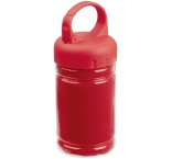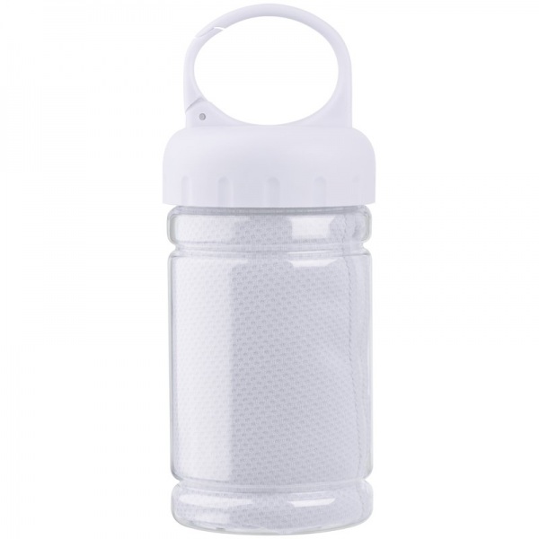 Športový uterák v plastovom puzdre s karabínkou. Veľkosť uteráka je 79x29cm.