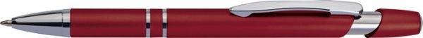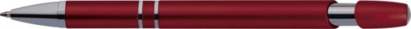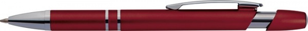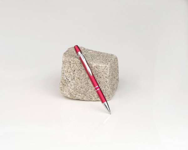 Plastové guľôčkové pero s kovovým vzhľadom. Pero má modrý atrament.