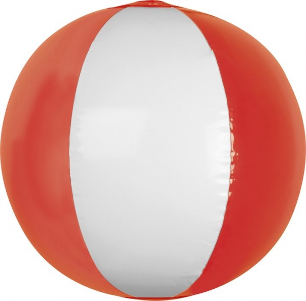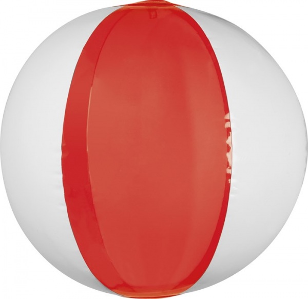 Nafukovacia plážová lopta s priehľadnými farebnými a bielymi časťami. Spôsob potlače sieťotlač.