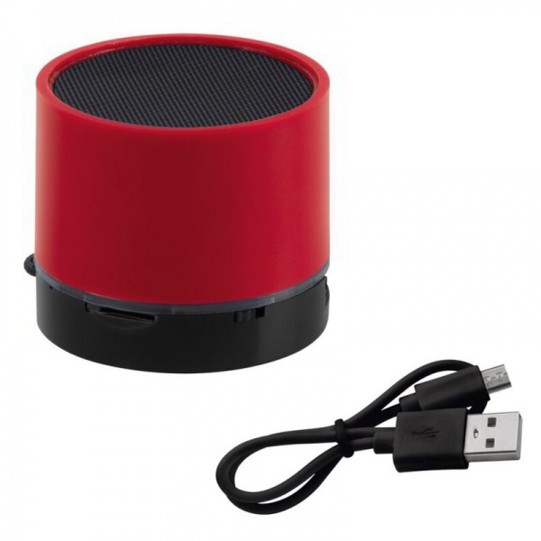 Bluetooth reproduktor s kovovým vzhľadom a tenkým LED svetlom dookola, ktoré svieti počas prehrávania.