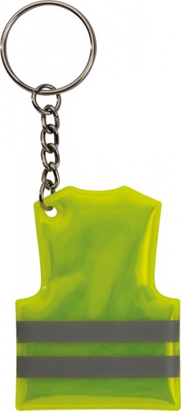 Kľúčenka v tvare bezpečnostnej vesty s reflexnými pásikmi.
