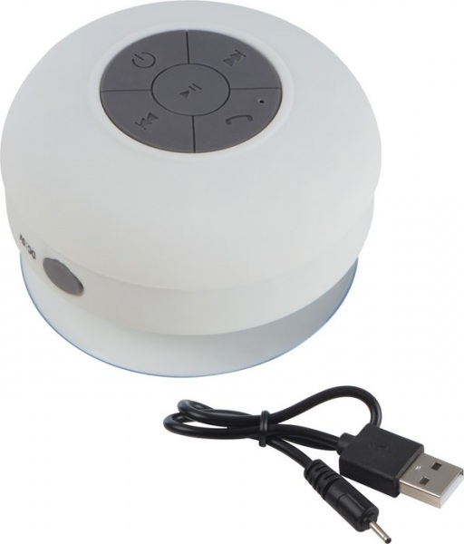 Bluetooth reproduktor s prísavkou na zadnej strane pre jednoduché prichytenie. ABS.
