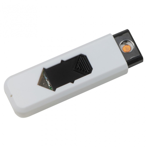 Plastový zapaľovač, ktorý sa nabíja USB káblom a zapaľuje bez plameňa.
