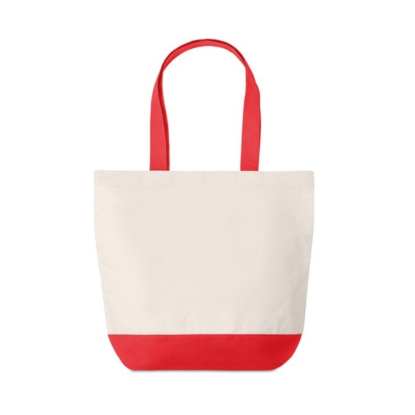 Plátená (280gr/m2) nákupná alebo plážová taška s farebným dnom a držadlami v rovnakej farbe. Vnútorné vrecko.