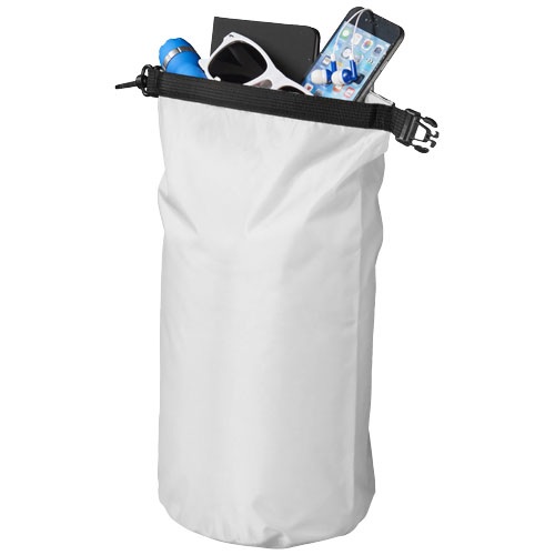 Nepremokavá taška vhodná do exteriéru. Rolovacie zatváranie s plastovou prackou zaisťuje, že cennosti zostanú v suchu a bezpečí. Dá sa ľahko pripevniť na tašku alebo opasok. Po zrolovaní a zovretí má objem 10 litrov.