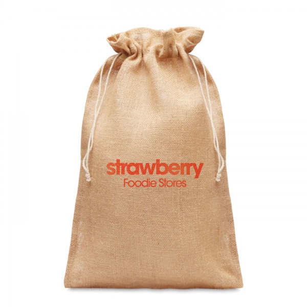 Veľké darčekové sťahovacie vrecúško z juty. Veľkosť cca. 14 x 22 cm.