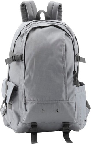 Ruksak z 210D polyesteru s dvoma priečinkami na zips a dvoma bočnými vreckami.