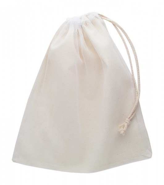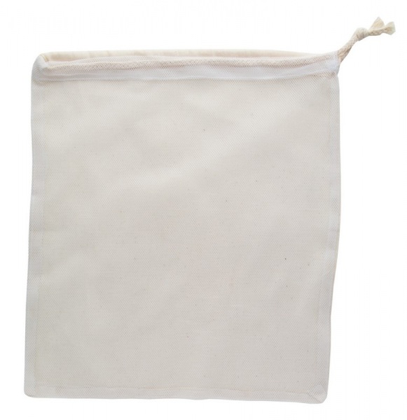 Opakovane použiteľný bavlnený vrecúško na ovocie a zeleninu, na prednej strane sieťovina, stiahnutie šnúrkou, 95 g / m?.