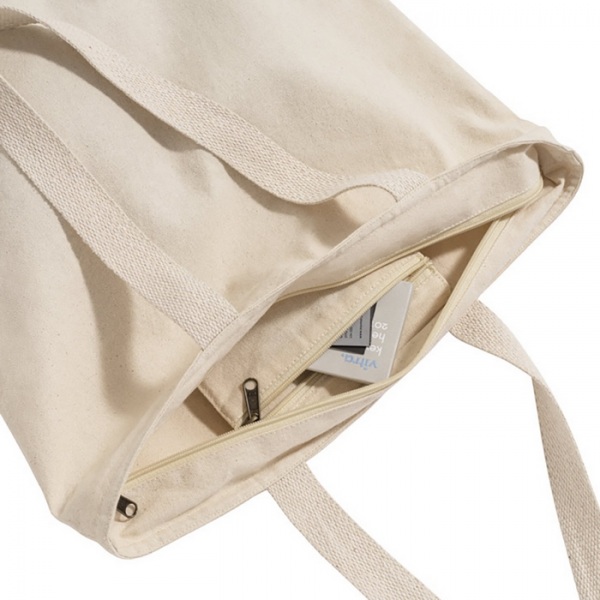 Taška zo 100% bavlny (280 g/m2) so zipsom a vnútorným vreckom. Bavlnený popruh s dĺžkou 65 cm.