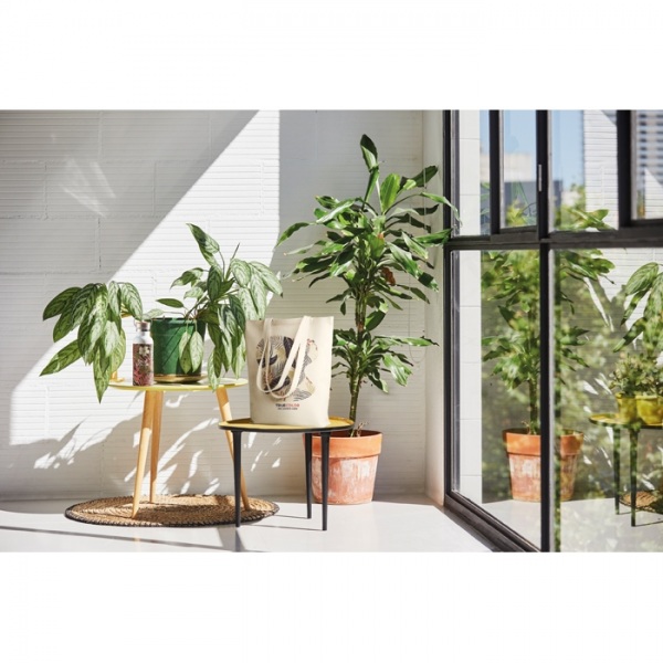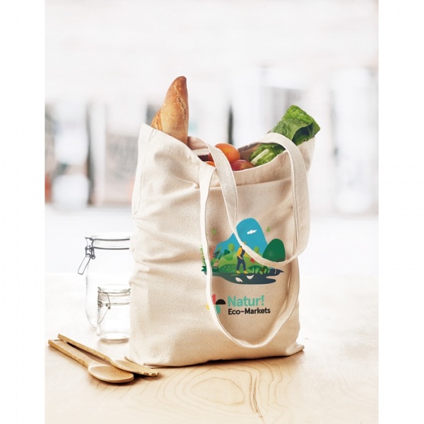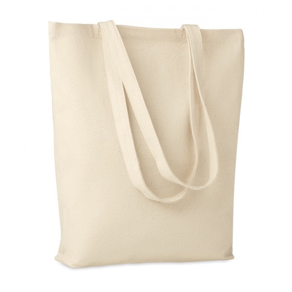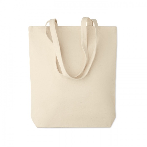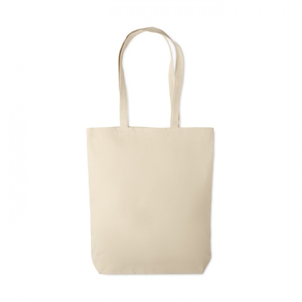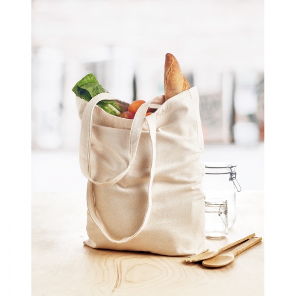 Plátená nákupná taška s dlhými držadlami a zloženým dnom.