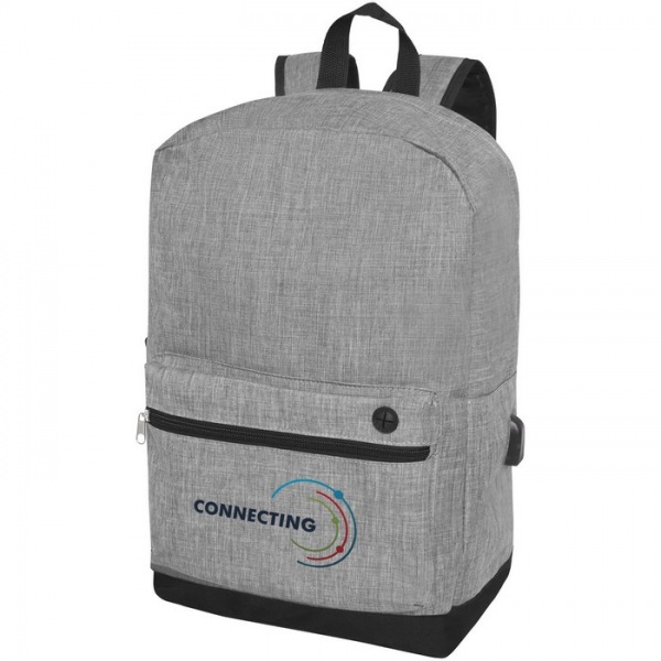 Batoh na notebook s vřesovým farebným efektom na prednom paneli a čiernou farbou v spodnej a zadnej časti. Batoh má veľkú hlavnú priehradku so zipsom a polstrovaným obalom na 15,6 "notebook, a ďalej predné oddiel so zipsom pre rýchly prístup k mobilným za