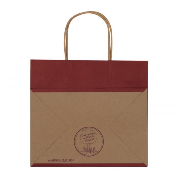 Ekologická, opakovane použiteľná taška z recyklovaného papiera s robustnými rukoväťami.
