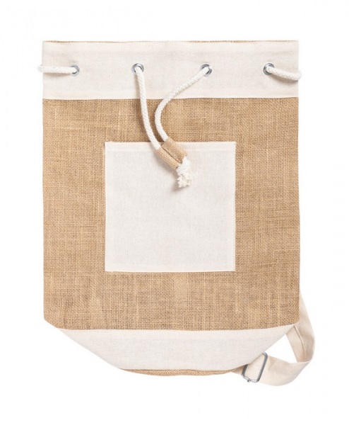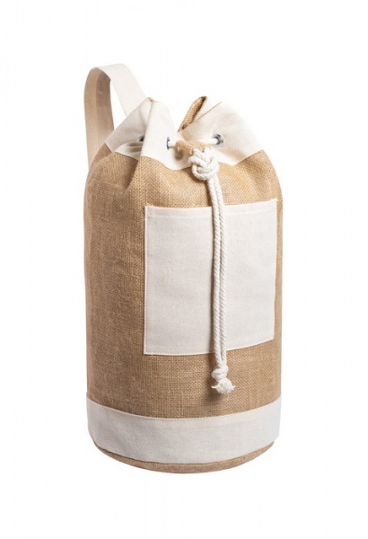 Jutový námornícky vak so sťahovaním šnúrkou a bavlnenou predným vreckom.