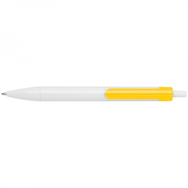 Plastové guľôčkové pero s farebným klipom. Pero má modrý atrament.