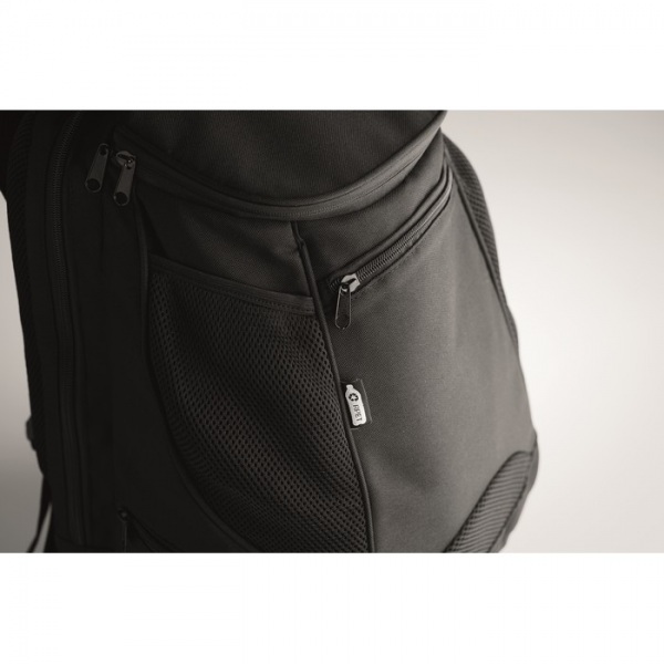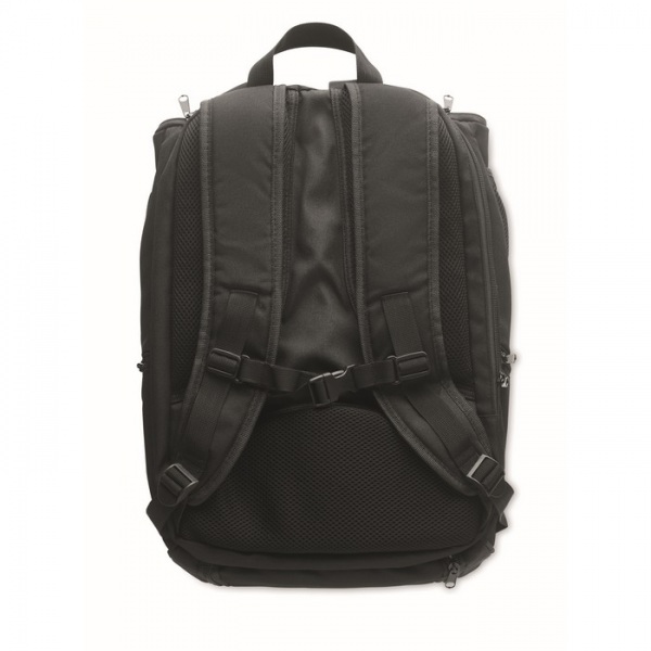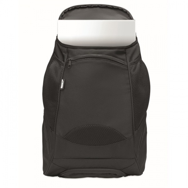 Multifunkčný športový batoh z 600D RPET s niekoľkými priehradkami (vrátane polstrovanej priehradky na raketu). Nastaviteľný ramenný popruh.