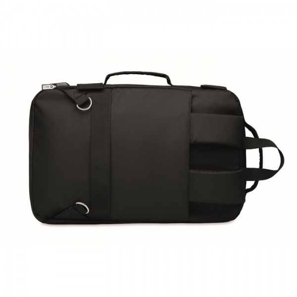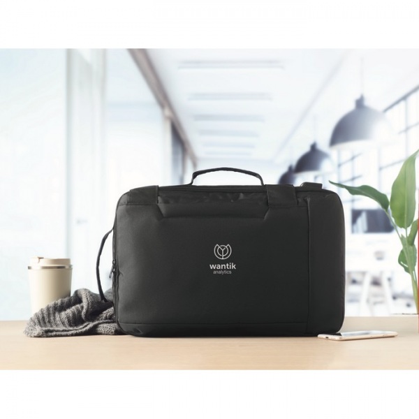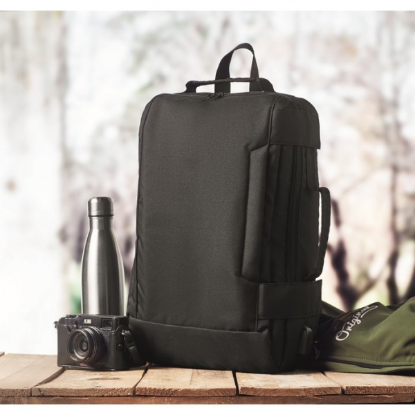 Počítačový batoh z 300D RPET s čalúneným ramenným popruhom. Vnútorná priehradka vhodná pre 16 palcový notebook. Výstup nabíjacieho kábla USB.