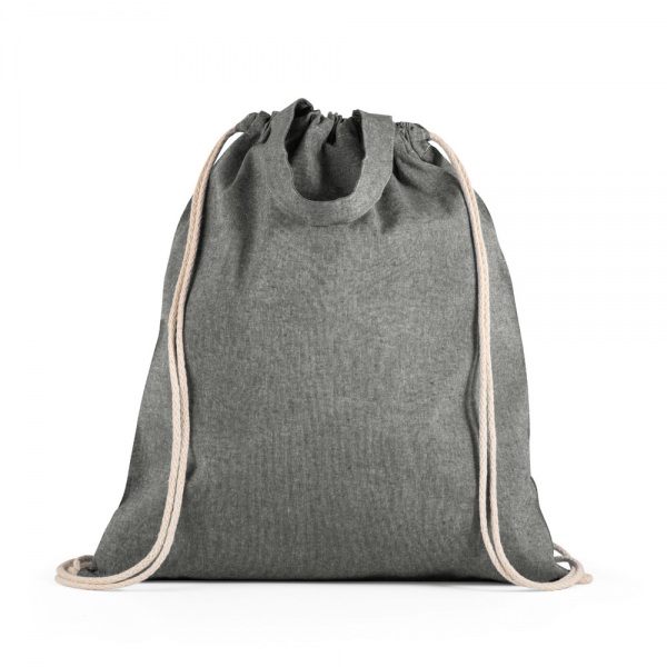 Vrecúško z recyklovanej bavlny (140 g/m2) s 30 cm držadlami a bavlnenými šnúrkami.