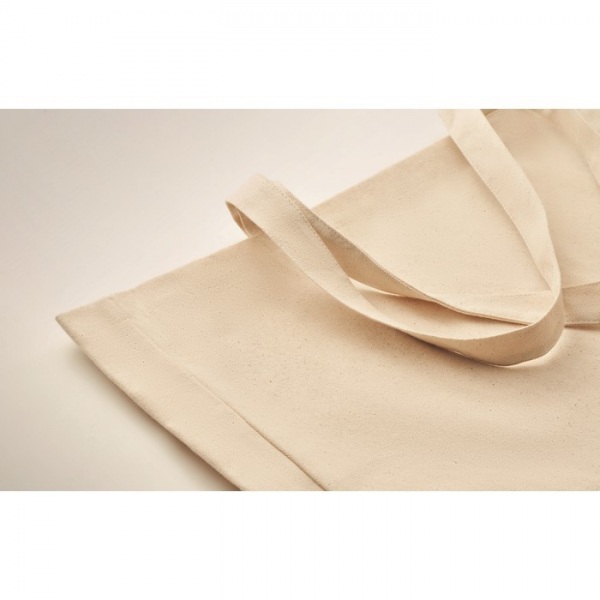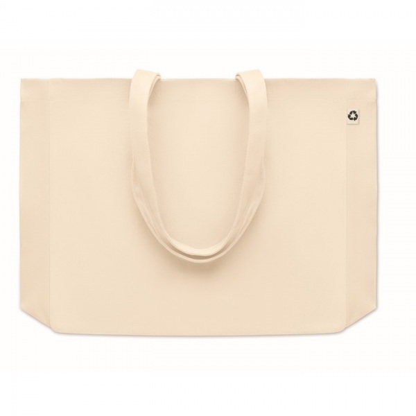 Nákupná alebo plážová taška z recyklovaného plátna s dlhými ušami a klinom. S gramážou 280 g/m2. 50% bavlna a 50% recyklovaná bavlna.