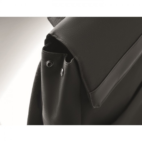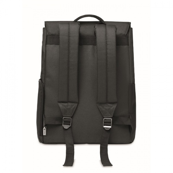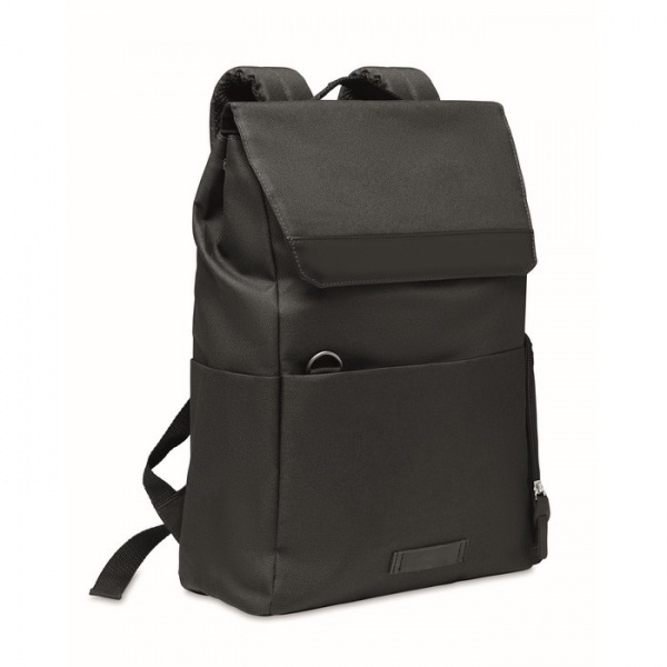 Dvojtónový batoh na 15 notebook z materiálu 600D RPET s magnetickým zapínaním. Polstrovaná priehradka na notebook, predné vrecká na zips a 2 bočné vrecká.