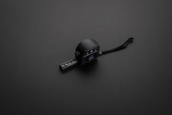 Prémiovo vybavený zvinovací meter s 5 m karbónovým obojstranným pásmom a integrovaným meracím laserom s dosahom až 30 m. Odolné pogumované puzdro. Integrovaný LCD displej na čítanie nameranej dĺžky laserom. Integrovaná batéria pre opakované dobíjanie. Bal