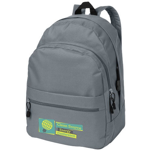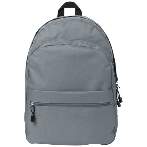 Ruksak s nastaviteľnými chrbtovými popruhmi, dvomi priečinkami na zips a predným vreckom na zips. Materiál: polyester 600D.