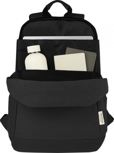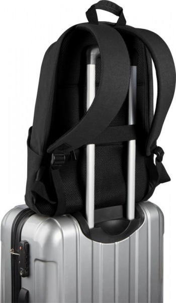 Nedobytný batoh z udržateľných materiálov má puzdro na tablet spolu s 15,6" polstrovanou priehradkou na notebook, vrecko zo sieťoviny a organizačné vrecká vo vnútri, 2 bočné vrecká na vodu, predné vrecko na zips a skryté vrecko na zadnej strane. Dekoratív