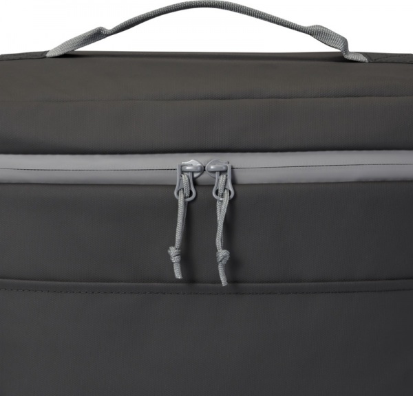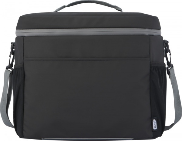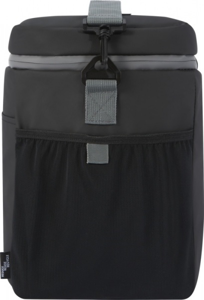 Vodeodolná chladiaca taška na 20 plechoviek z recyklovaných materiálov certifikovaných GRS, vrátane zipsov. Priestranná priehradka na zips s tepelnou izoláciou PEVA, 2 sieťované vrecká a jedno predné vrecko, nastaviteľný popruh. Objem 22 litrov. Bez PVC.