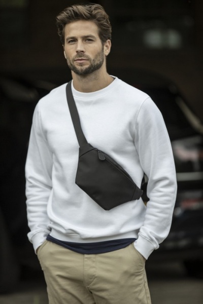 Vonkajšia strana z 51% GRS recyklovaného PU plastu a podšívka zo 100% GRS recyklovaného RPET. Ľadvinka má veľkú priehradku na zips a vo vnútri sa nachádza malé vrecko na zips. Popruh je nastaviteľný a je možné ho rýchlo uvoľniť pomocou spony.
